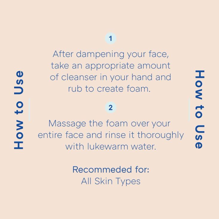 Wet your face with lukewarm water. Dispense an appropriate amount and lather into foam. Gently massage over the face and rinse thoroughly.