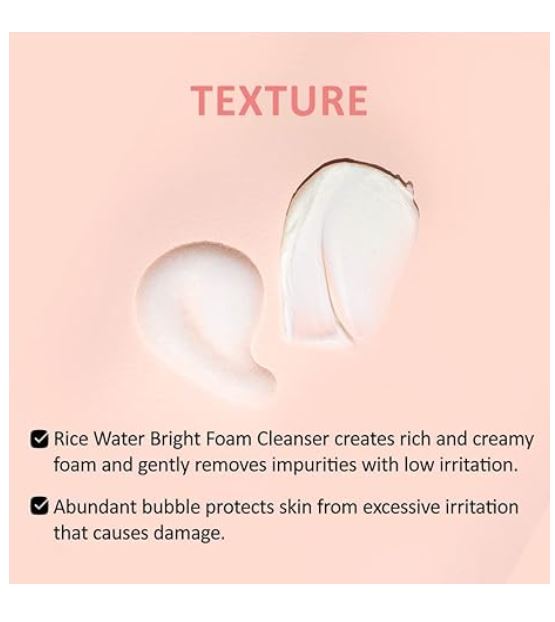 Rice Water Enrichment: Enriched with rice water extract, this cleansing foam harnesses the natural goodness of rice to cleanse, hydrate, and revitalize your complexion.