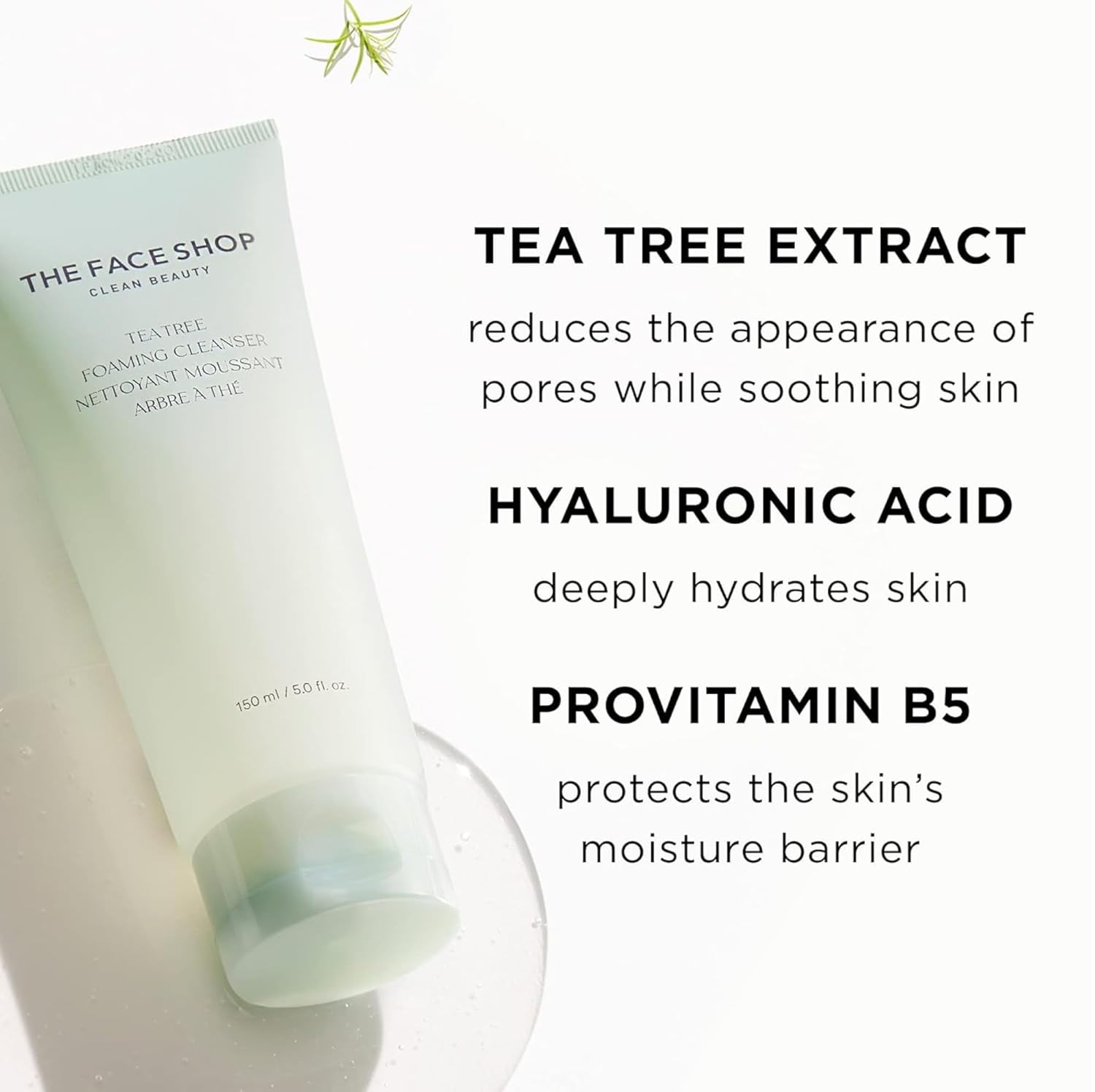 THE FACE SHOP Tea Tree Pore Clarifying Gel Cleanser | Gentle Facial Foam Cleanser for Acne-Prone Skin | Removes Excessive Sebum with Soothing Effect | 5.0 fl. Oz,K-Beauty