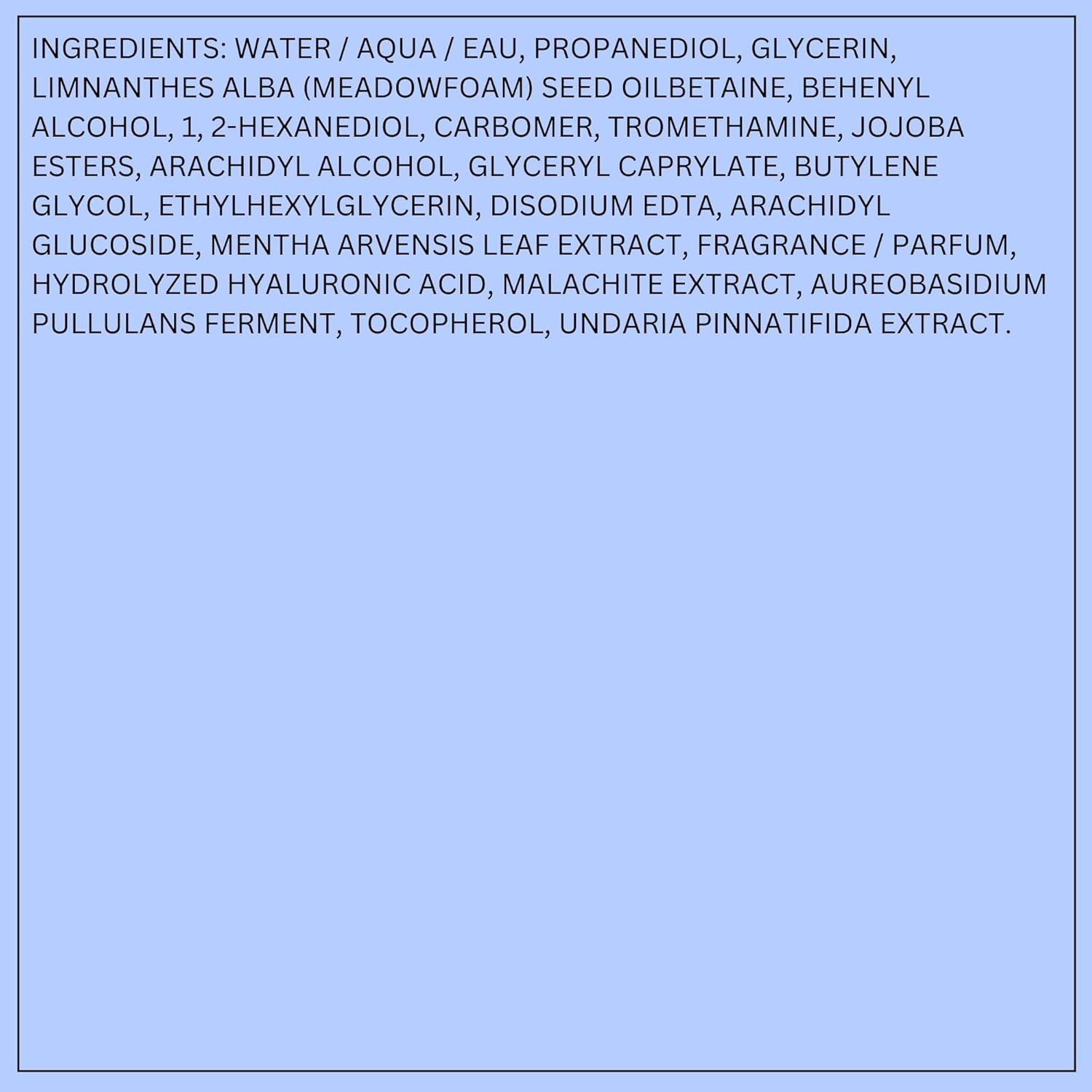 A cool, refreshing gel bursting with up to 48 hours of soothing hydration that is hypoallergenic, dermatologist-tested, and suitable for sensitive skin. This lightweight gel is full of tiny cream beads that melt on contact, delivering glow-y hydration your skin will love. Blue Hyaluronic Acid—fermented with deep sea algae and put through a 10-step microfiltration process—is micro sized to absorb better and faster for intense, lasting hydration.