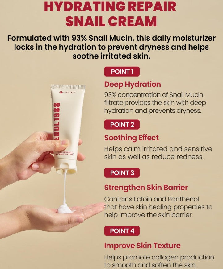 K-SECRET SEOUL 1988 Snail Mucin 93% + Rice Cream 100ml / 3.38 fl. oz.
