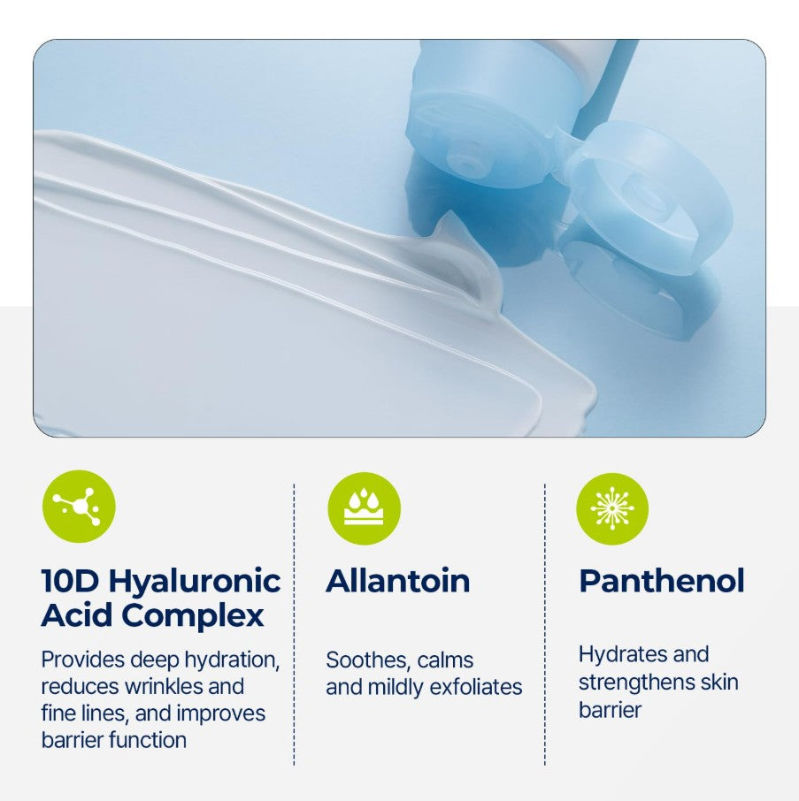The product is packed with the moisture-rich 10D complex hyaluronic acid and Panthenol to help create a strong moisture barrier that avoids moisture from evaporating due to UV rays.