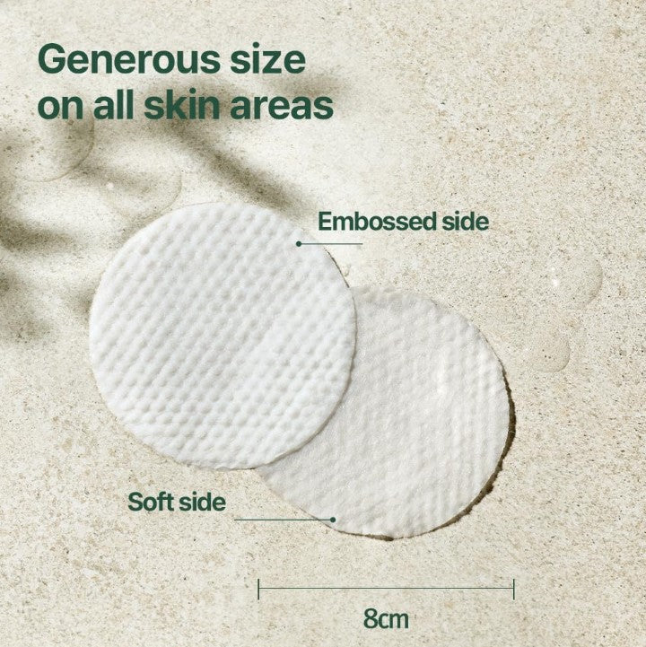 BIG DOUBLE-SIDED PAD - Compare to other regular toner pad products which is normally 2 inch big, Calming Toner Pad is 3 inch which has both embossed side and soft side. They give a gentle pore care and skin texture preparation altogether