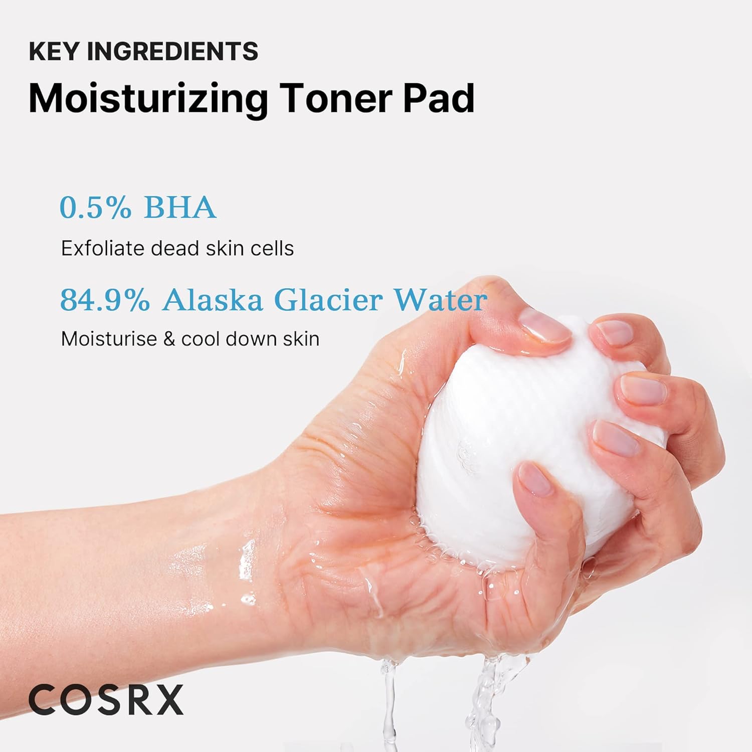 With 0.5% BHA and 84.9% Alaska Glacier Water Extract, One-Step Moisture Up Pads gently care for rough and patchy skin texture. The pads help balance the pH level of skin and protect the skin's moisture barrier.