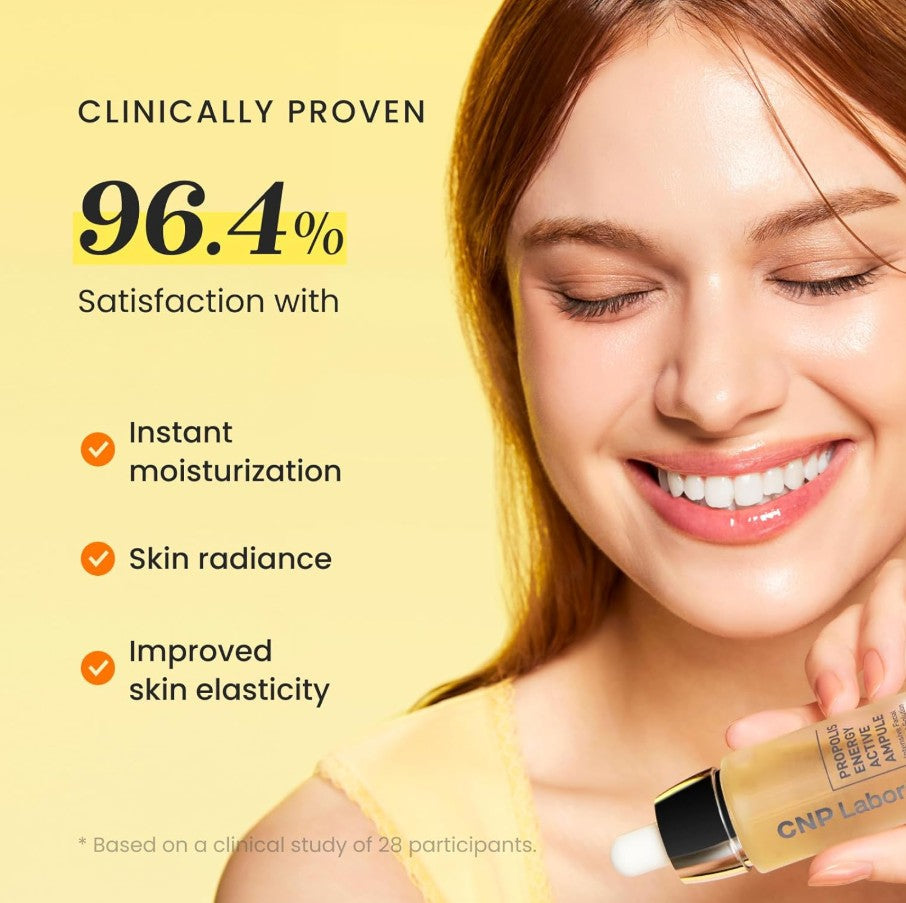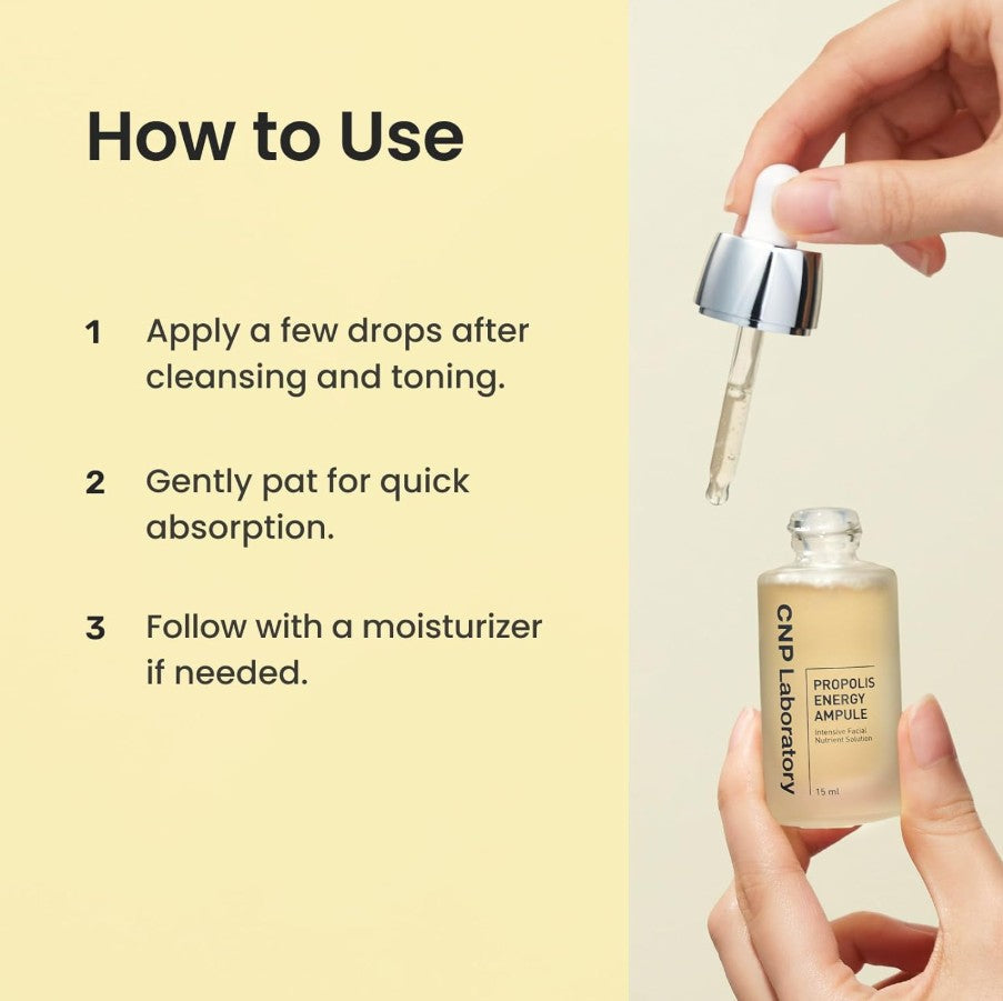 The CNP Propolis Energy Active Ampoule has been a consistent best-seller since 2005. This facial ampoule is infused with two types of propolis extracts, working to provide deep hydration and a healthy glow to your skin. Each bottle contains 15ml / 0.5 fl. oz.