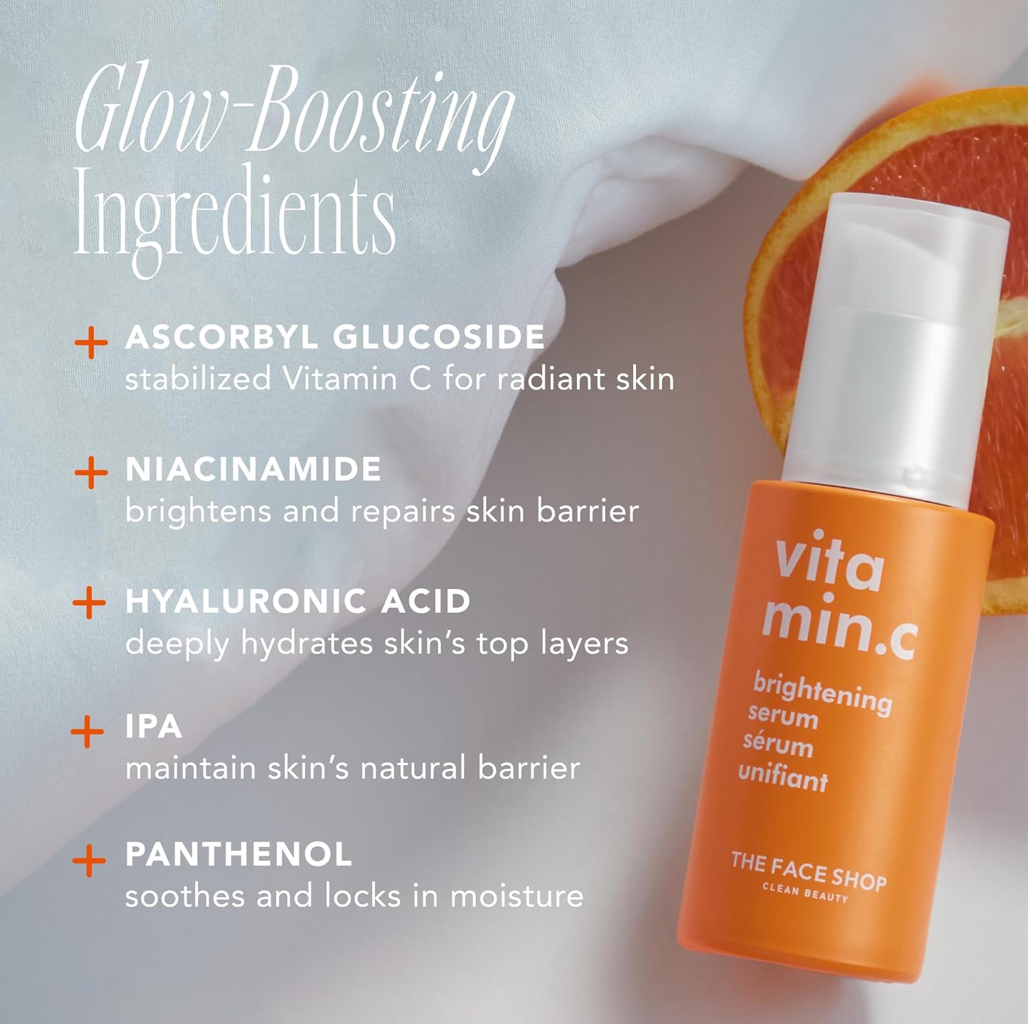 The Face Shop Vitamin C Skin Brightening Serum - Brighten Complexion, Fade Dark Spots, Improve Dull & Uneven Skin Tone - Vitamin C Face Serum, Hyaluronic Acid, Niacinamide Serum - Korean Skin Care